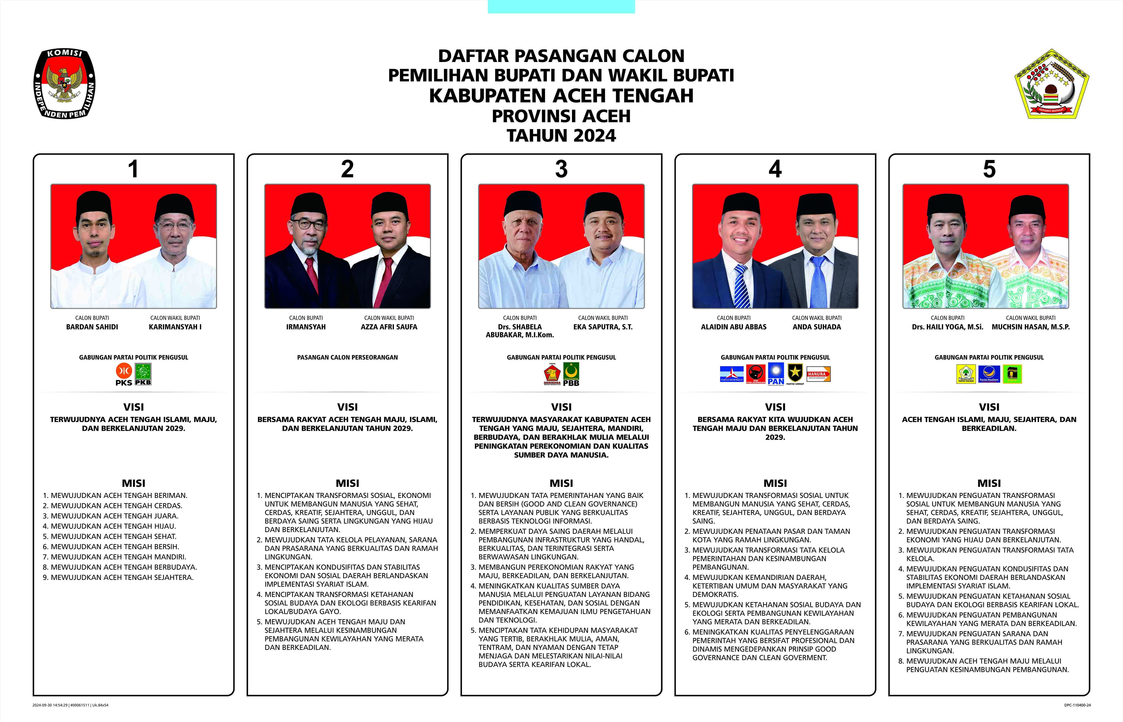 Daftar Pasangan Calon Pada Pemilihan Bupati dan Wakil Bupati Aceh Tengah Tahun 2024