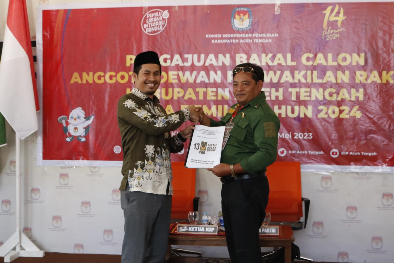 Dokumen Pengajuan dilakukan oleh Ketua PBB Kabupaten Aceh Tengah, Arsaddin, didampingi Sekretaris Radian, pada pukul 13.46 WIB.