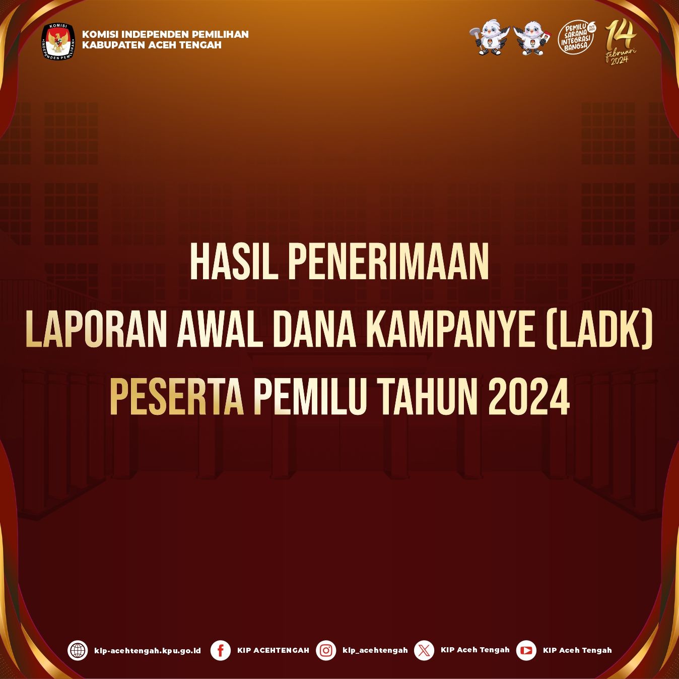 Hasil Laporan Awal Dana Kampanye (LADK) Peserta Pemilu 2024 Sabtu, 13 Januari 2024 07:00 86 Berikut kami sampaikan Laporan Awal Dana Kampanye (LADK) Peserta Pemilu Tahun 2024 Hasil Laporan Awal Dana Kampanye (LADK) Peserta Pemilu Tahun 2024 Download Hasil Laporan Awal Dana Kampanye (LADK) Perbaikan Peserta Pemilu Tahun 2024 Download Bagikan: Dilihat 86 Kali.