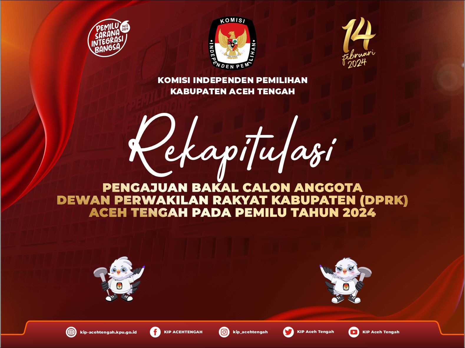 Berikut Rekapitulasi penerimaan pengajuan Bakal Calon Anggota DPRK Aceh Tengah pada Pemilu Tahun 2024