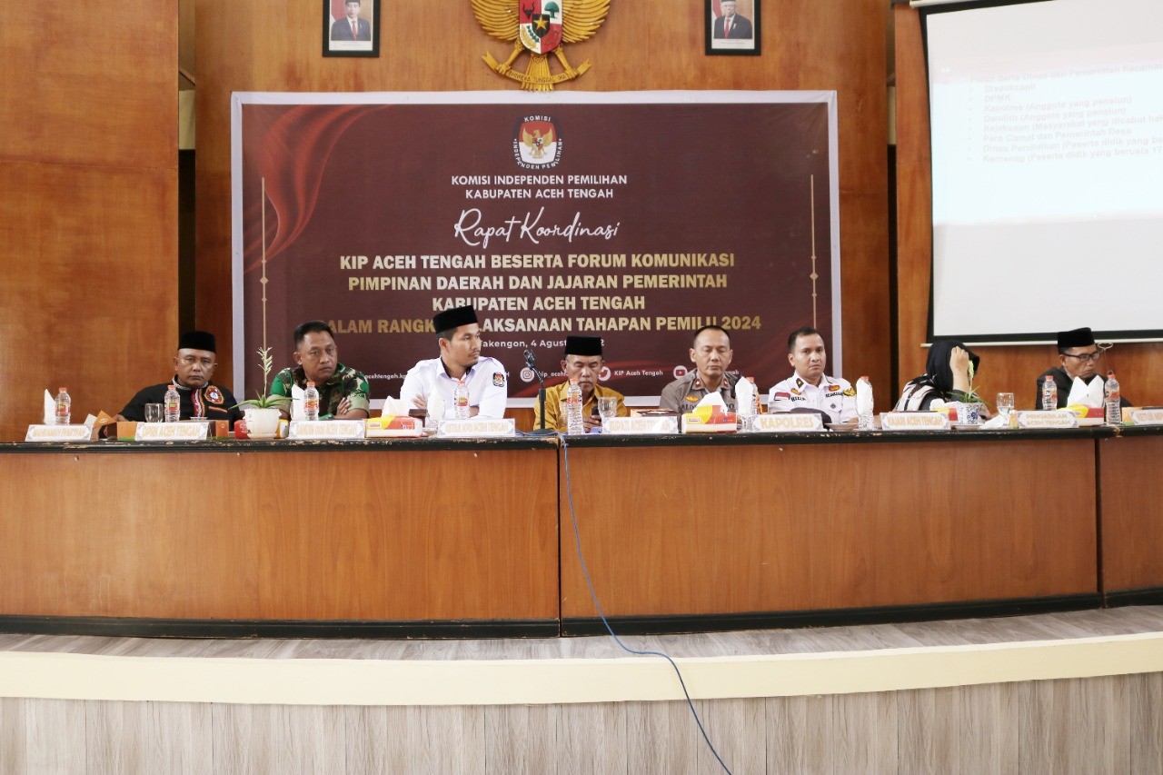 KIP Aceh Tengah Laksanakan Rakoor dengan Forkopimda Kabupaten Aceh Tengah, Guna Mendukung Suksesnya Pemilu 2024