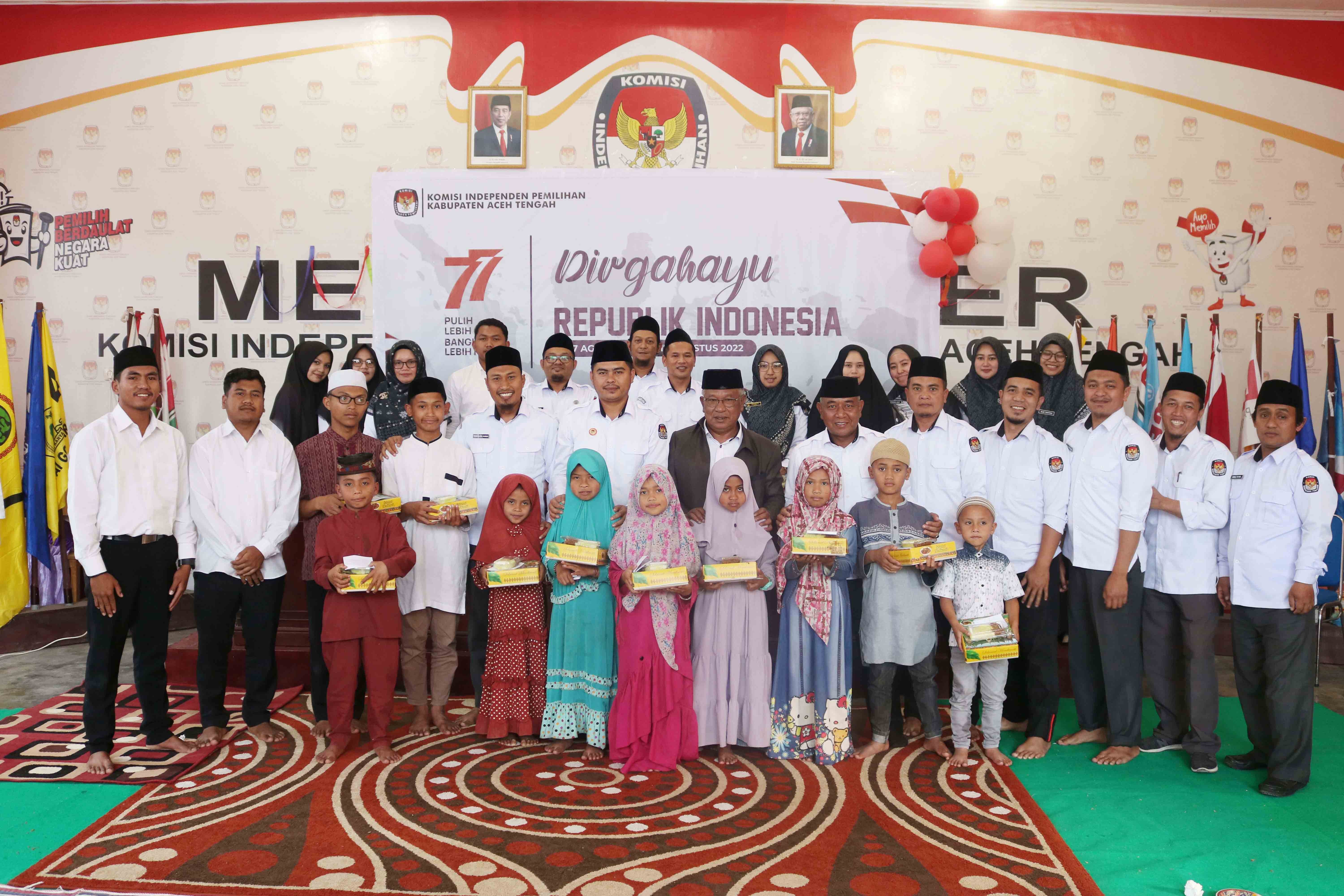 Kegiatan ini dihadiri oleh Mukhlis, Ketua Divisi SDM, Sosialisasi, dan Partisipasi Masyarakat, Sunardi, Ketua Divisi Hukum dan Pengawasan, M. Sofyan, Sekeretaris KIP Aceh Tengah dan seluruh jajaran KIP Aceh Tengah serta beberapa anak yatim piatu yang diundang langsung ke kantor KIP Aceh Tengah.