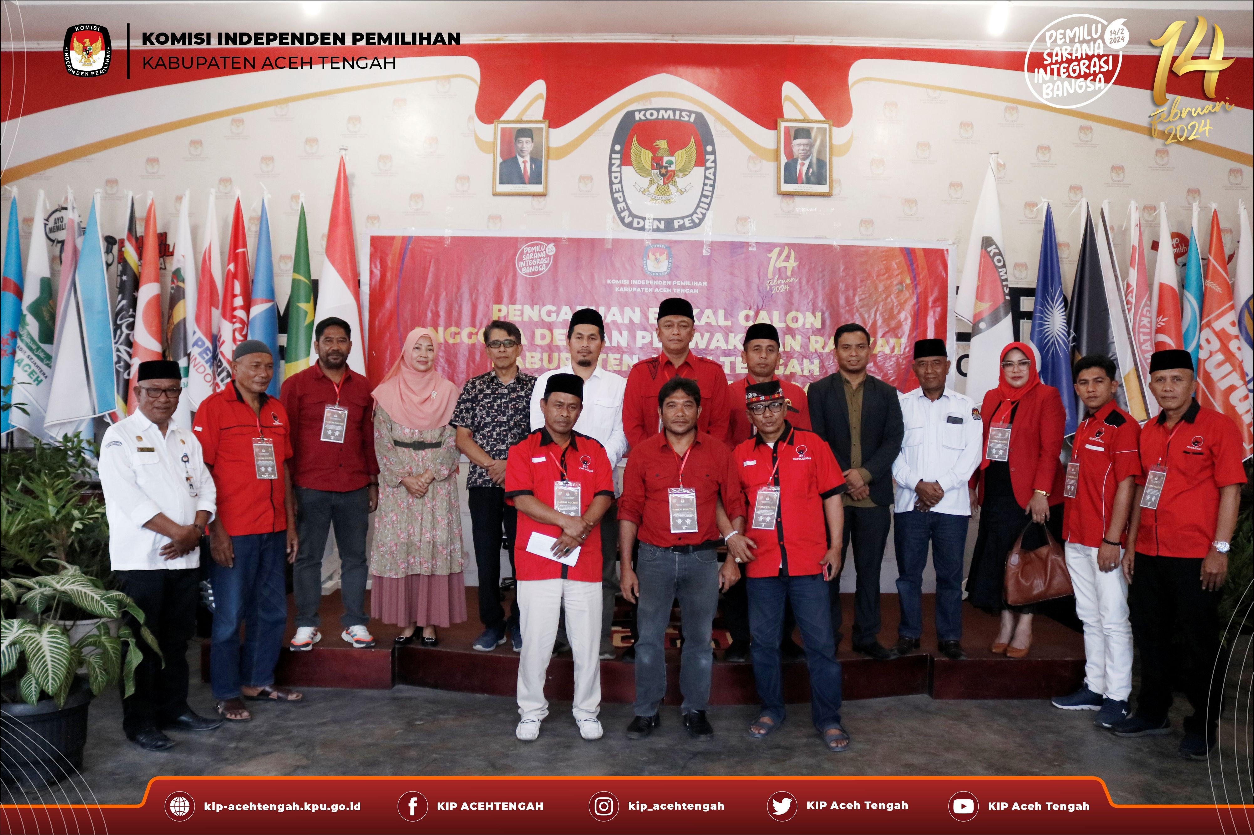 Perwakilan partai disambut oleh Sekretaris KIP Aceh Tengah, Muhammad Sofyan. Pengajuan bakal calon Anggota Dewan Perwakilan Rakyat Kabupaten (DPRK) berlangsung dari 1-14 Mei 2023.