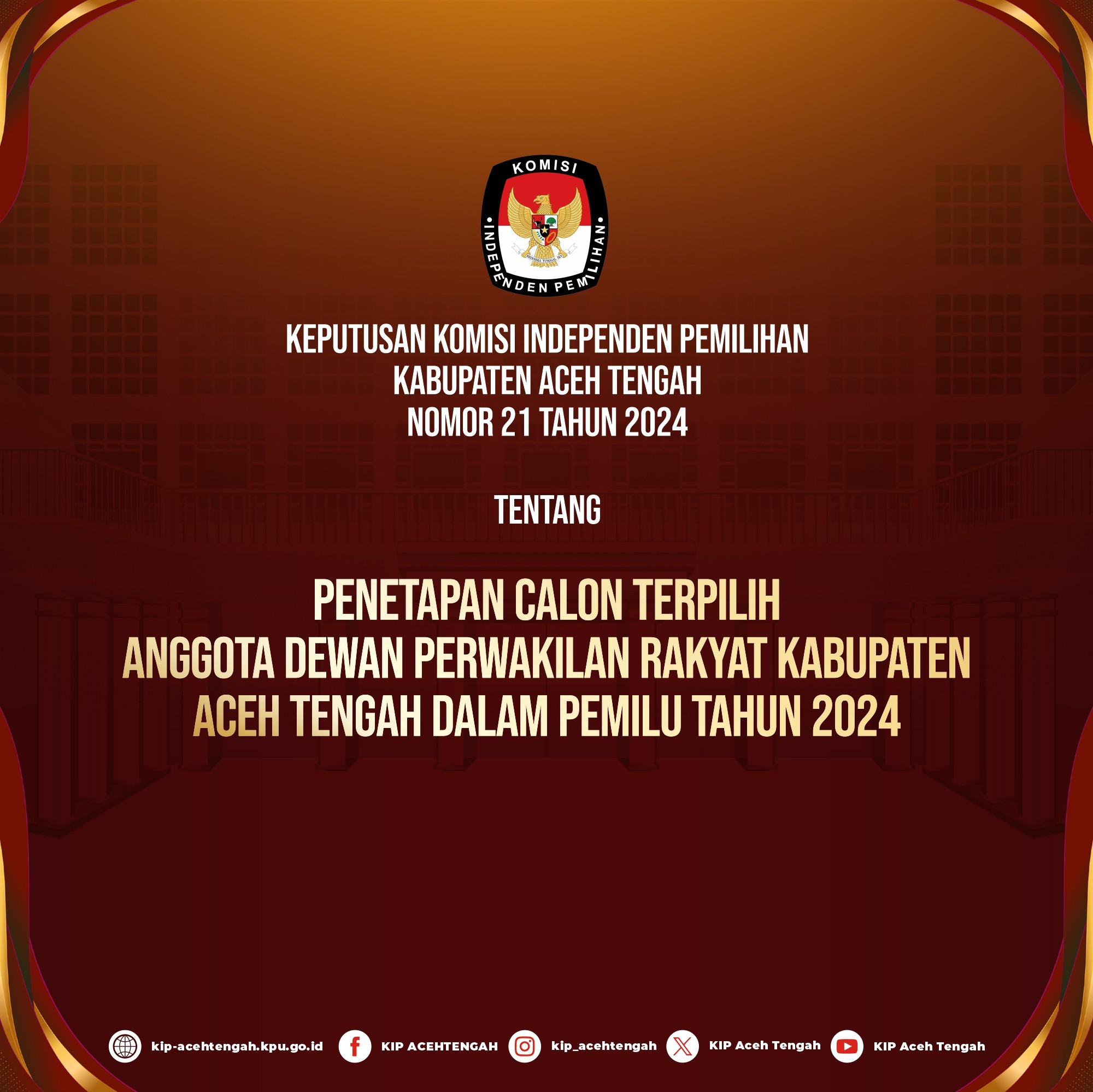 Penetapan Calon Terpilih Anggota Dewan Perwakilan Rakyat Kabupaten Aceh Tengah dalam Pemilu Tahun 2024 Jumat, 03 Mei 2024 07:00 63 Unduh file PDF Download Bagikan: Dilihat 63 Kali.