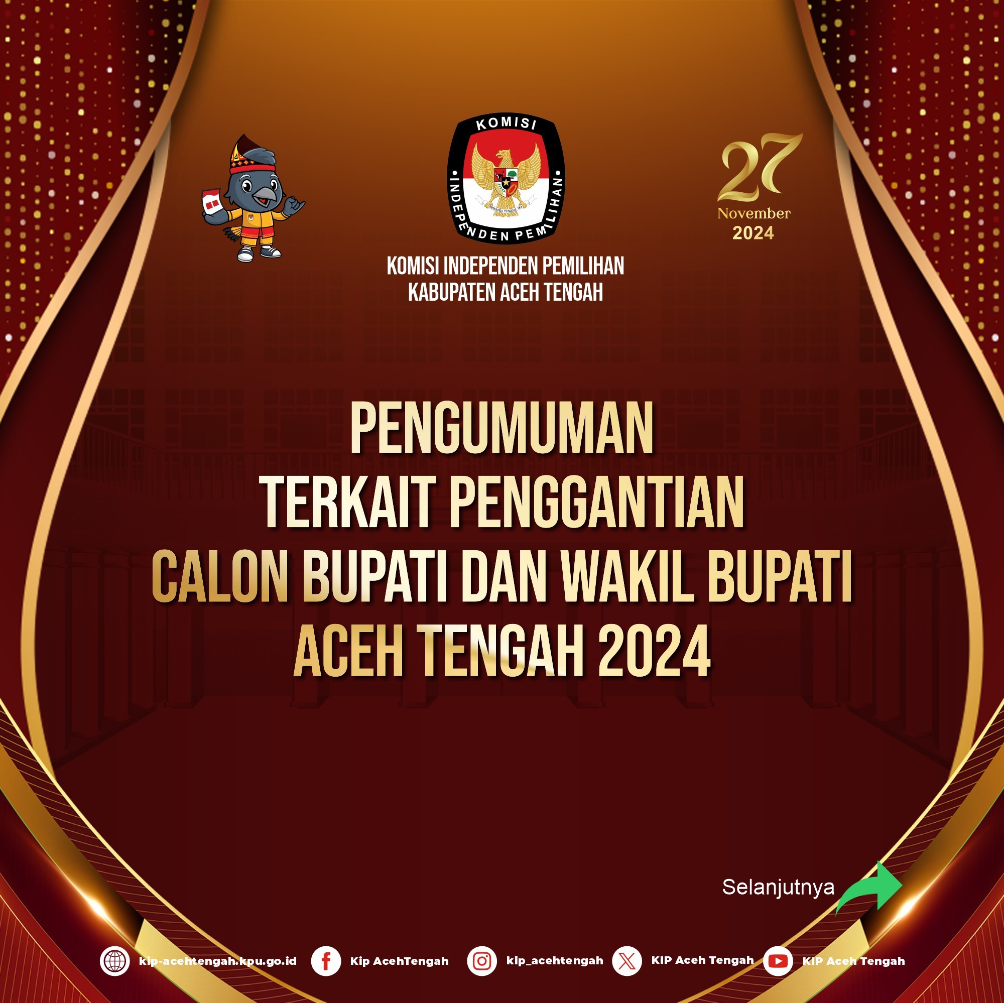 Pengumuman Penggantian Pasangan Calon Bupati dan Wakil Bupati Aceh Tengah Tahun 2024