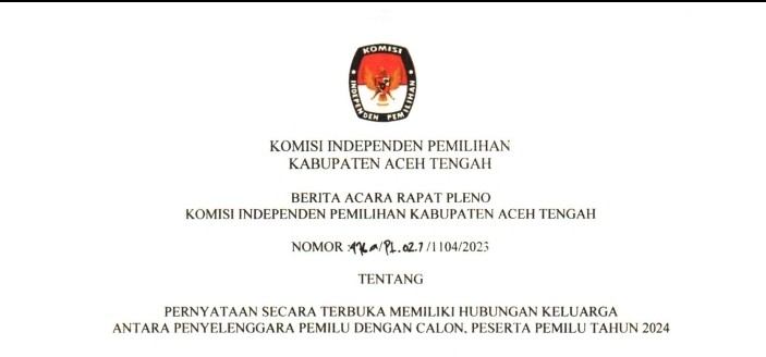 Pernyataan Hubungan Keluarga Kasubbag KUL KIP Aceh Tengah dengan Peserta Pemilu Jumat, 15 Desember 2023 07:00 71 Pernyataan Secara Terbuka Memiliki Hubungan Keluarga Antara Penyelenggara Pemilu (Fitri Lestari, Kasubbag KUL KIP Aceh Tengah) dengan Calon Peserta Pemilu 2024 (Fahrial Kasir, Caleg Partai Gerindra Dapil 3) Bagikan: Dilihat 71 Kali.